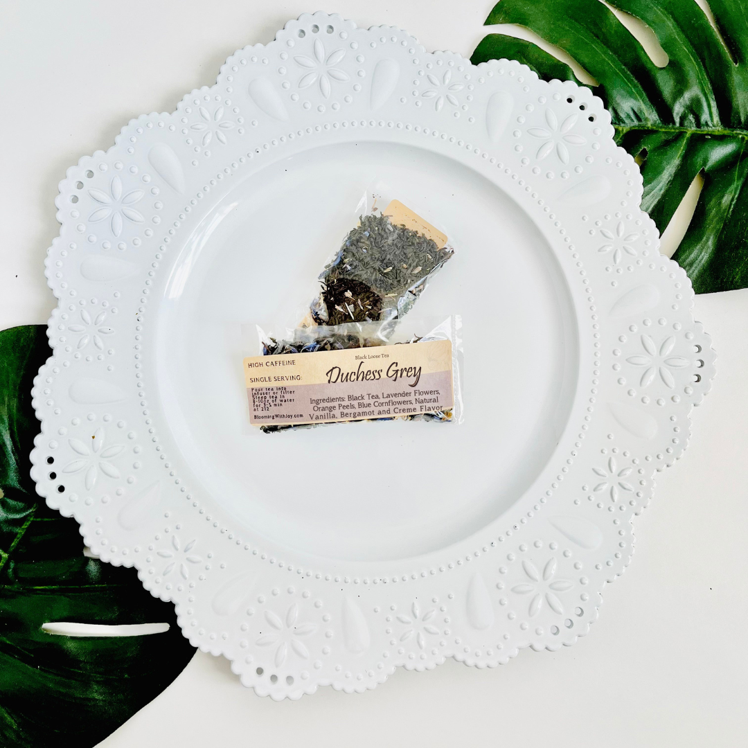 Experience the refined elegance and soothing aroma of our Duchess Grey tea, and let its delicate flavors transport you to a state of calm and contentment with every cup.