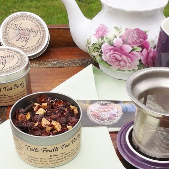 Indulge in the enchanting flavors of Tutti Frutti Tea Party, a caffeine-free herbal blend perfect for elegant tea gatherings.