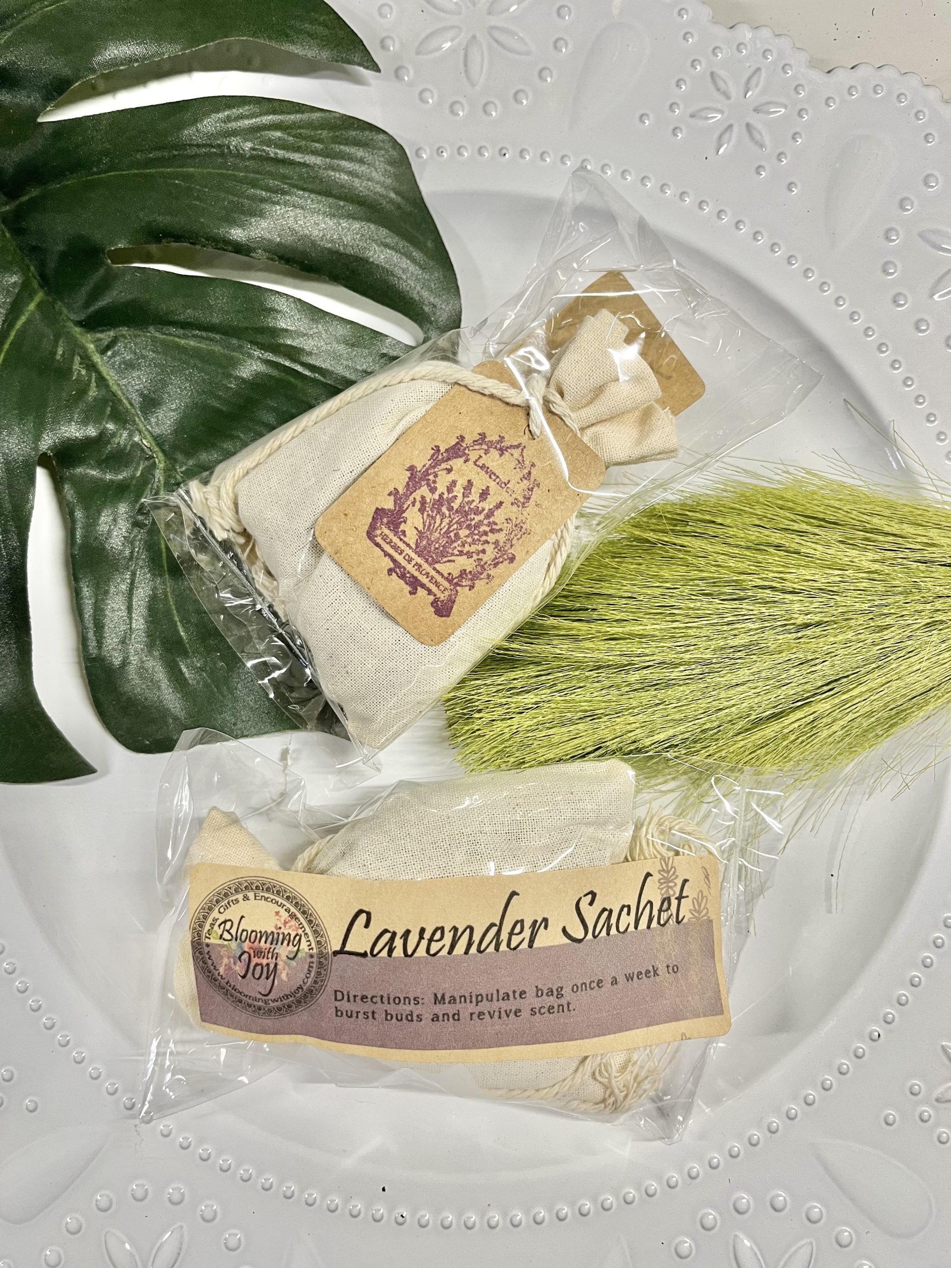 This lovely lavender sachet is filled with .6 oz of driedΒ Lavender buds. The sachet natural cotton organza bag measures approximately 3″ x 5″. These sachets have a very relaxing lavender scent given off by the natural oils in the lavender flowers.